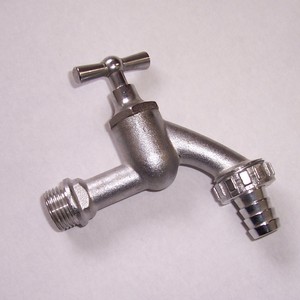 Mit der Anschlussgarnitur. Das Wasserventil ist im Garten, Keller, Terrasse umv. Auslaufventil aus Messing poliert.